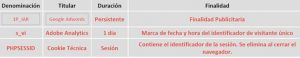 COOKIES UTILITZADES EN LA NOSTRA WEB